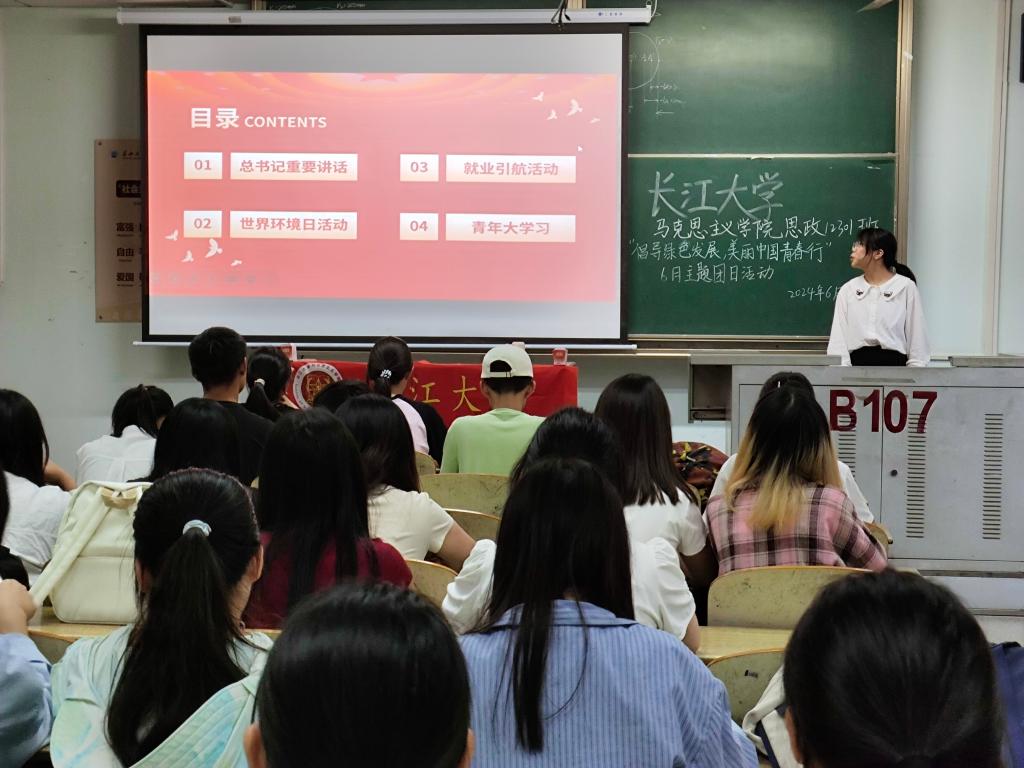 为进一步引导学生牢固树立和践行“绿水青山就是金山银山”的理念,思政12101班通过集中组织观看世界环境日主题微视频,全面学习环境保护的相关知识,倡导垃圾分类、光盘行动。思政12202班在团会中讲述了青年榜样故事,围绕青年就业工作展开了讨论。