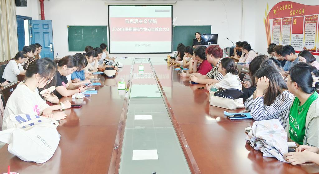 于7月5日上午10时,在文科楼1104室召开2024年暑期留校学生安全教育会。本次会议由学工办主任张云雾主持,全体暑期留校学生及班级安全员共同参会。