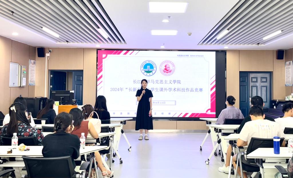 在文科楼1008室开展“长新杯”大学生课外学术科技作品竞赛院内初赛。