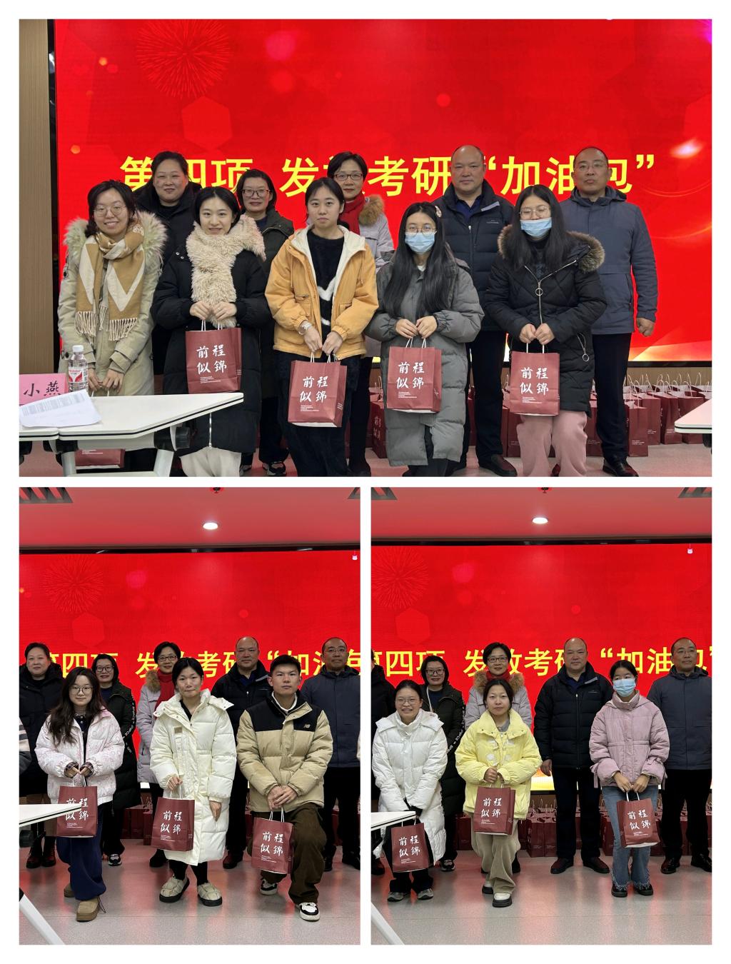 会上,全体师生观看了学院精心制作的考研祝福视频,与会老师向每位考研学子发放了“考研加油礼包”并送上了“心”意满满的祝福,希望同学们带着信心、细心、平常心踏上考场,从容作答,成功上岸。