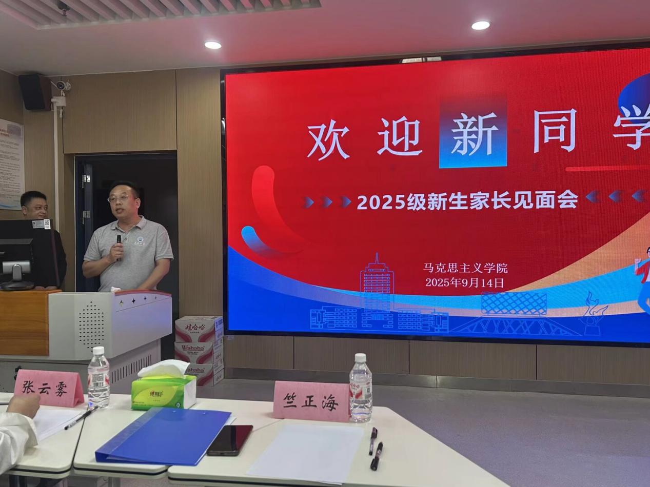 于文科楼1008会议室召开2025级本科新生家长见面会。学院党委副书记竺正海、学工办主任张云雾、新生辅导员邓鹏以及2025级本科新生与家长共同参与本次活动。