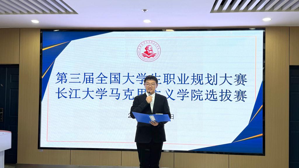 职业规划大赛决赛。经过复赛选拔,共有8名选手晋级本次决赛。学工办主任张云雾,年级辅导员邓鹏,专任教师陈思杭,高年级代表崔孔辉、田钰鑫、袁田担任评委,全体大一学生到场观摩。