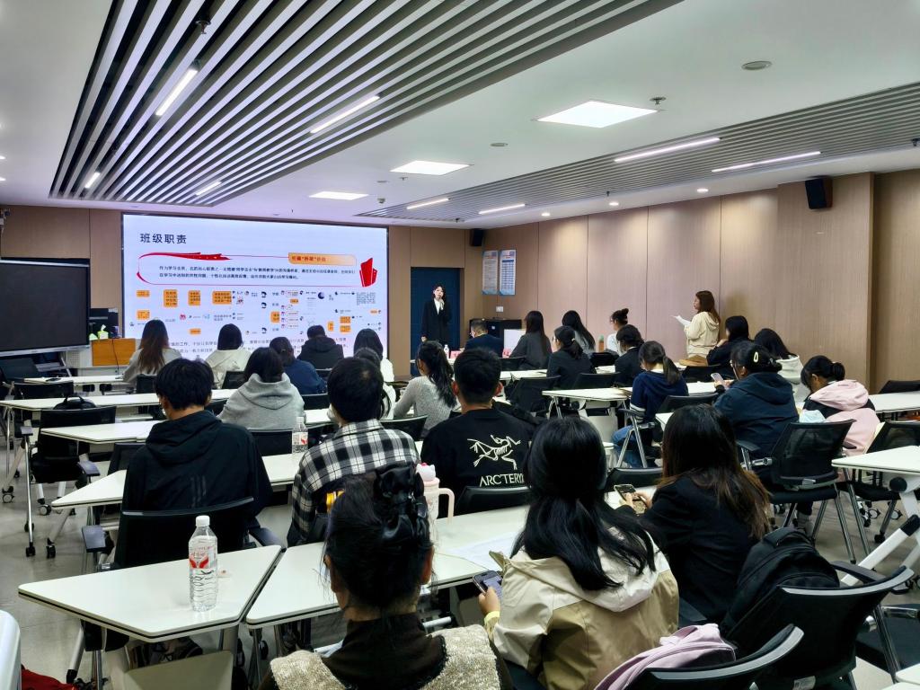 在文科大楼1008室举行2025年秋季学期新发展团员答辩会。学院党委副书记竺正海、辅导员邓鹏,学生会主席团成员代表以及各班级团支书代表受邀担任本次答辩评委。