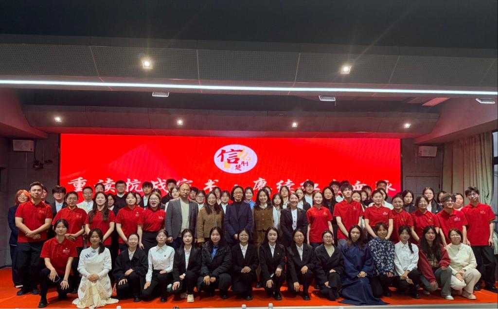 “信·荆楚”团队更是以追寻先烈足迹的赤诚,写下了新时代青年的“回信”,用青春视角回应着英烈的期许……十支团队依次登台朗诵演绎,用一句句滚烫的话语、一声声真挚的诵读,将英烈们对国家的忠诚、对家人的牵挂与对民族未来的期许娓娓道来,也让在场师生仿佛穿越时空,直面英烈们纯粹炽热的赤子之心。
