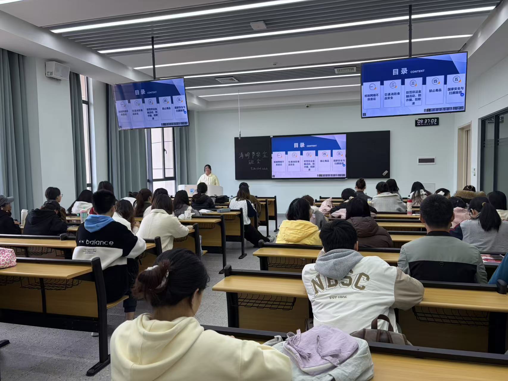 本、研各班级组织召开了清明节前安全教育主题班会,班主任、辅导员及全体学生参与其中。