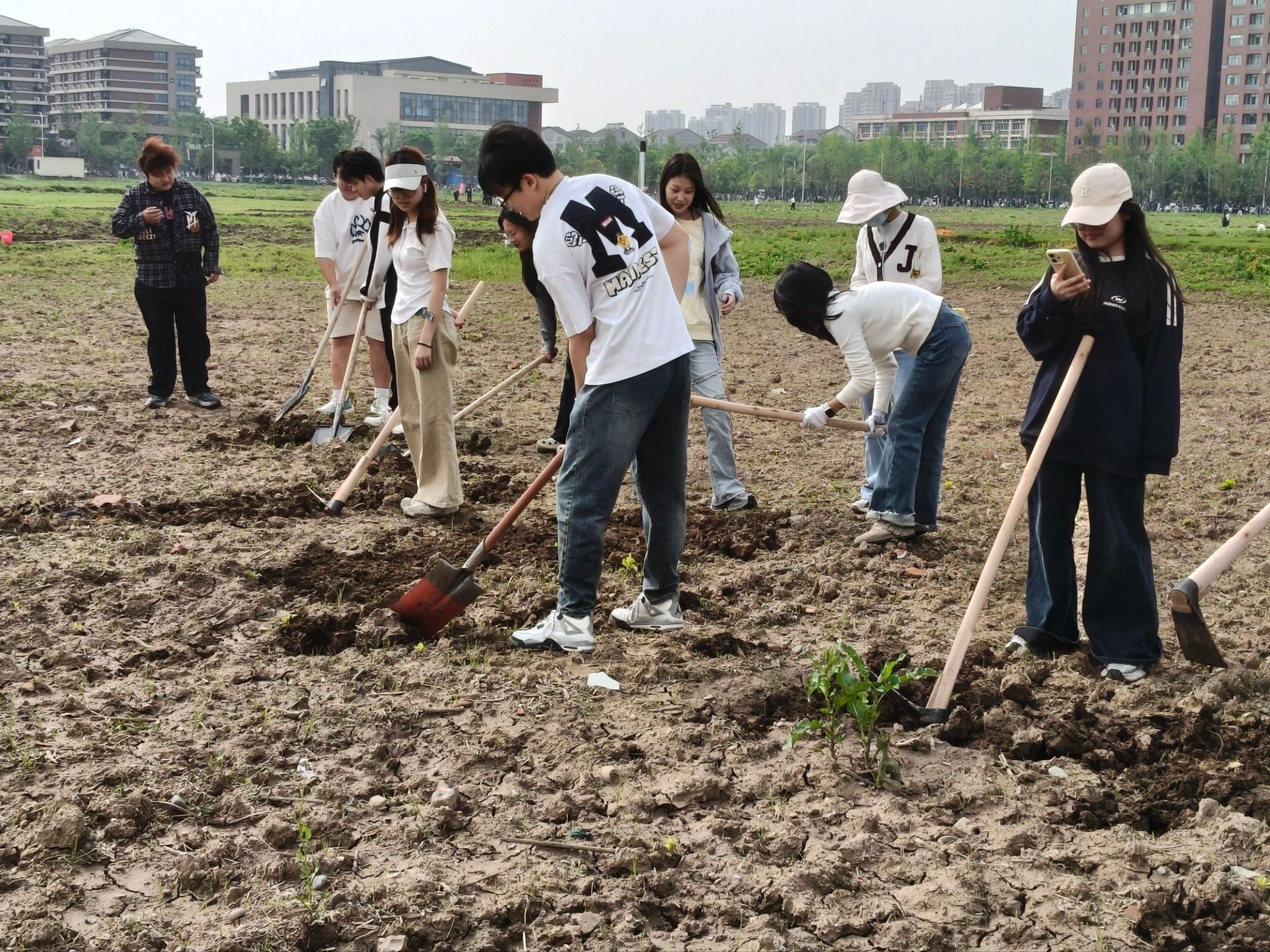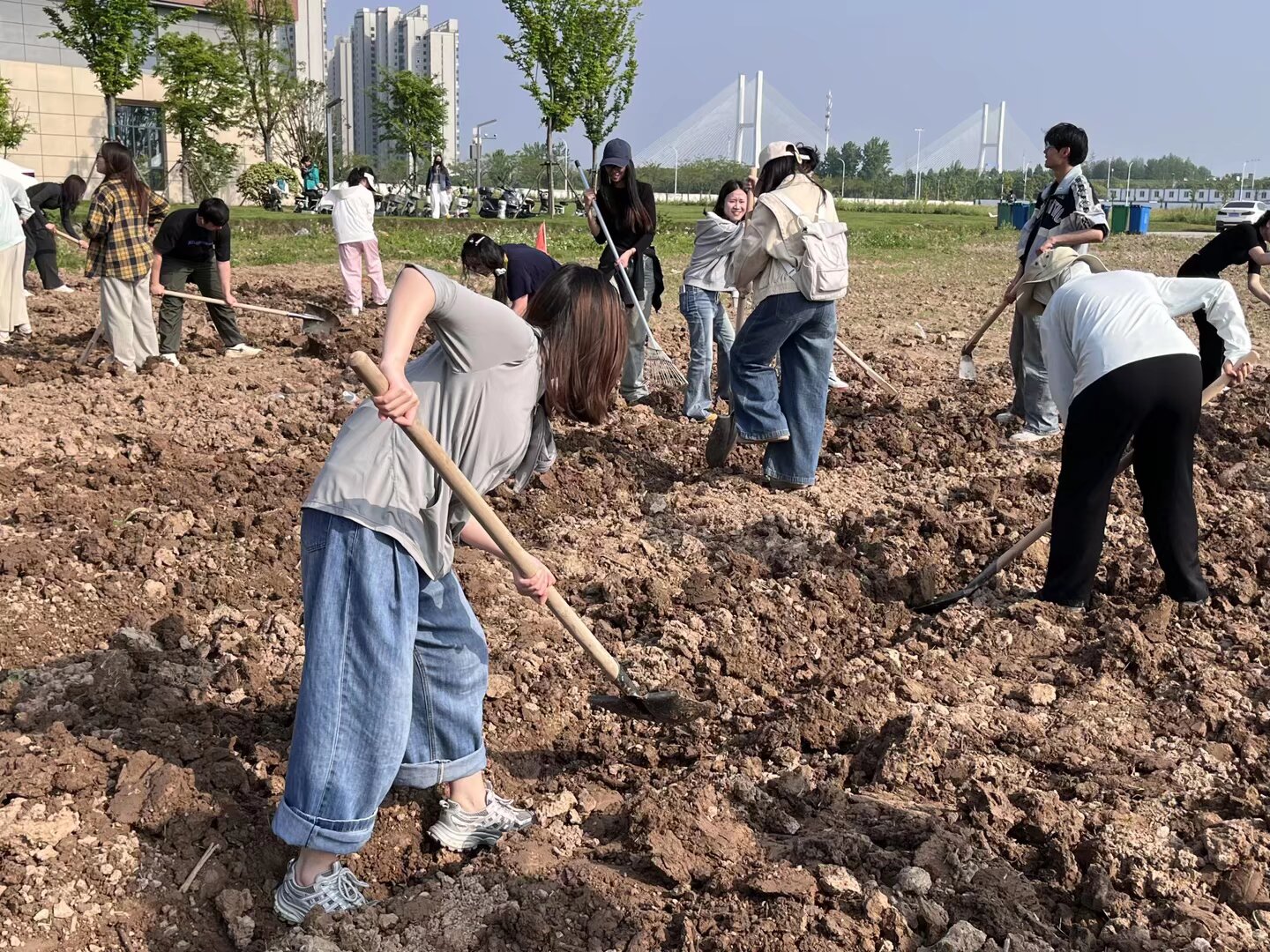 活动现场,同学们热情饱满、分工协作,迅速投身到农耕劳作中。大家各司其职、配合默契,有条不紊地完成翻土整地、挖坑播种、覆土压实、浇水灌溉等各项农事操作,以十足的干劲沉浸式体验田间劳作,田间地头处处呈现出热火朝天的忙碌景象。同学们走出课堂、远离书本,亲身感受农耕劳作的艰辛与不易,在脚踏实地的劳作中褪去浮躁、沉淀心性。劳动过程中,大家互帮互助、迎难而上,不怕脏、不怕累,切实体悟“一粥一饭,当思来之不易”的深刻内涵,深刻领会劳动精神的时代价值。