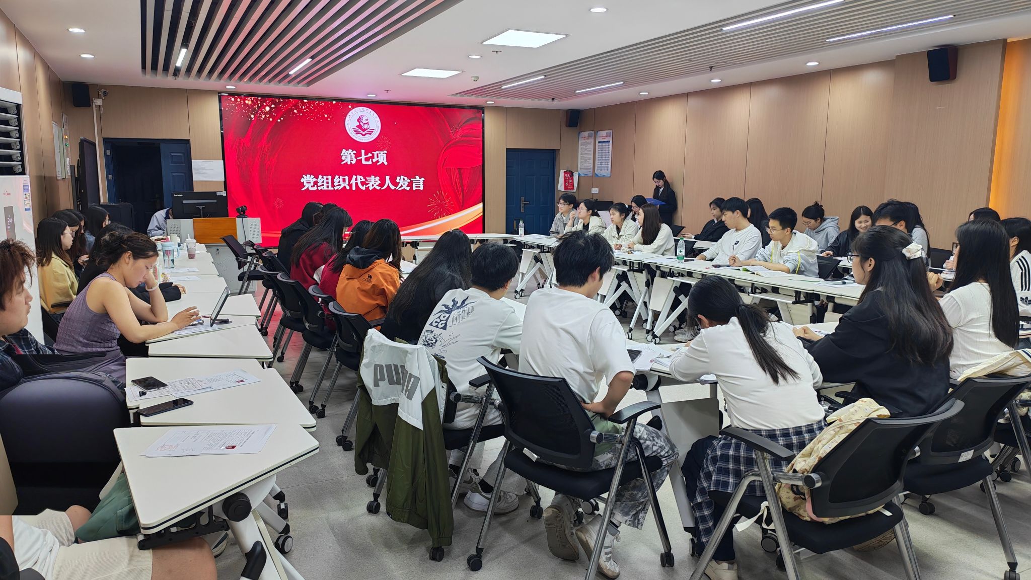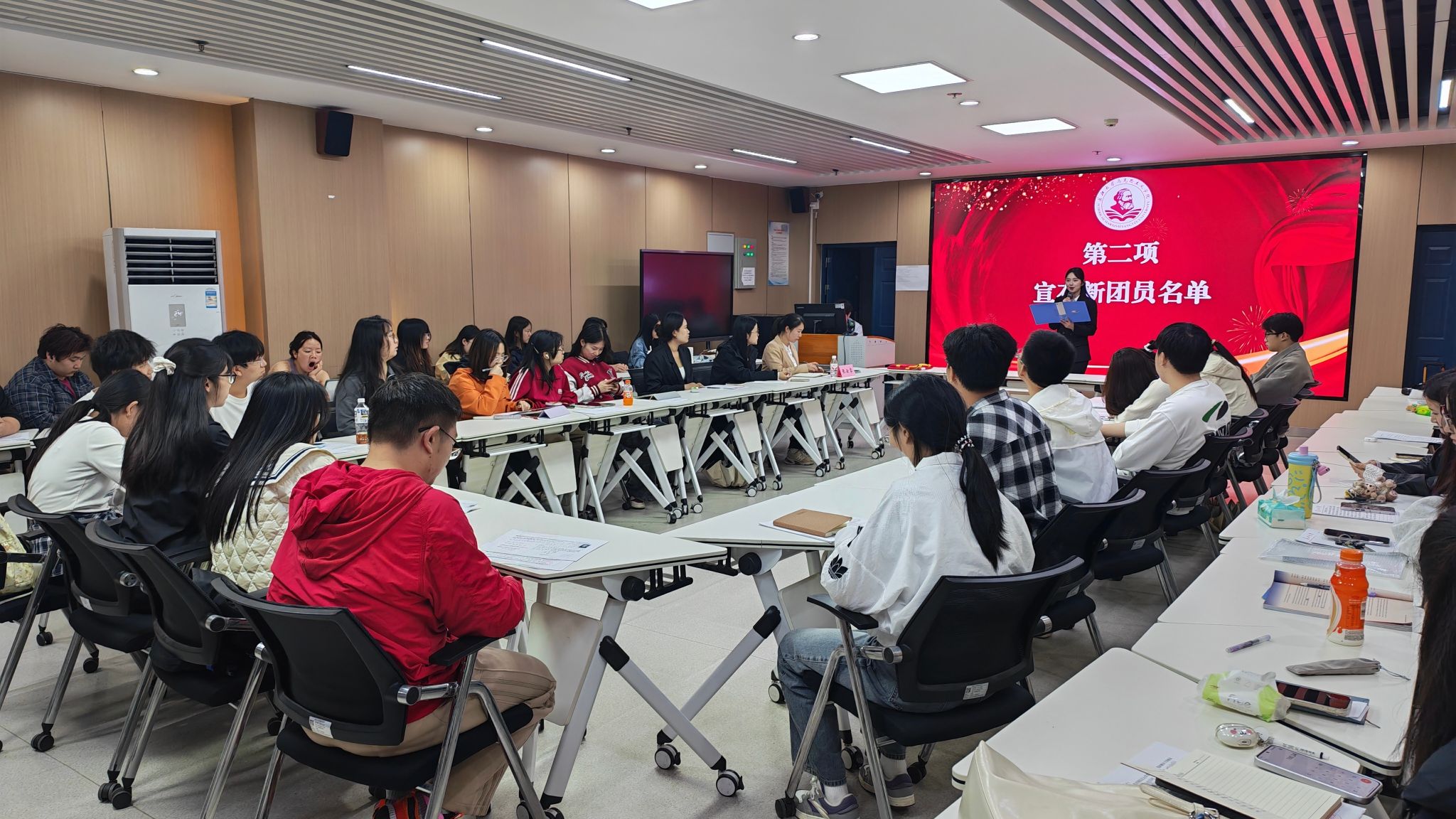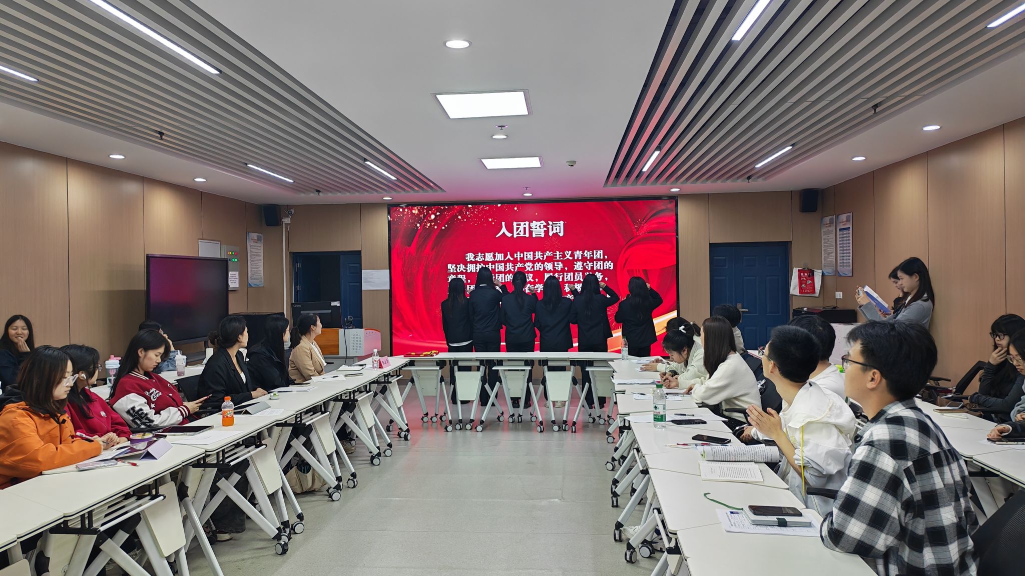 示范性入团仪式在文科楼1008室举行。学院团委书记张云雾、优秀团员代表及全体新团员参与本次活动。