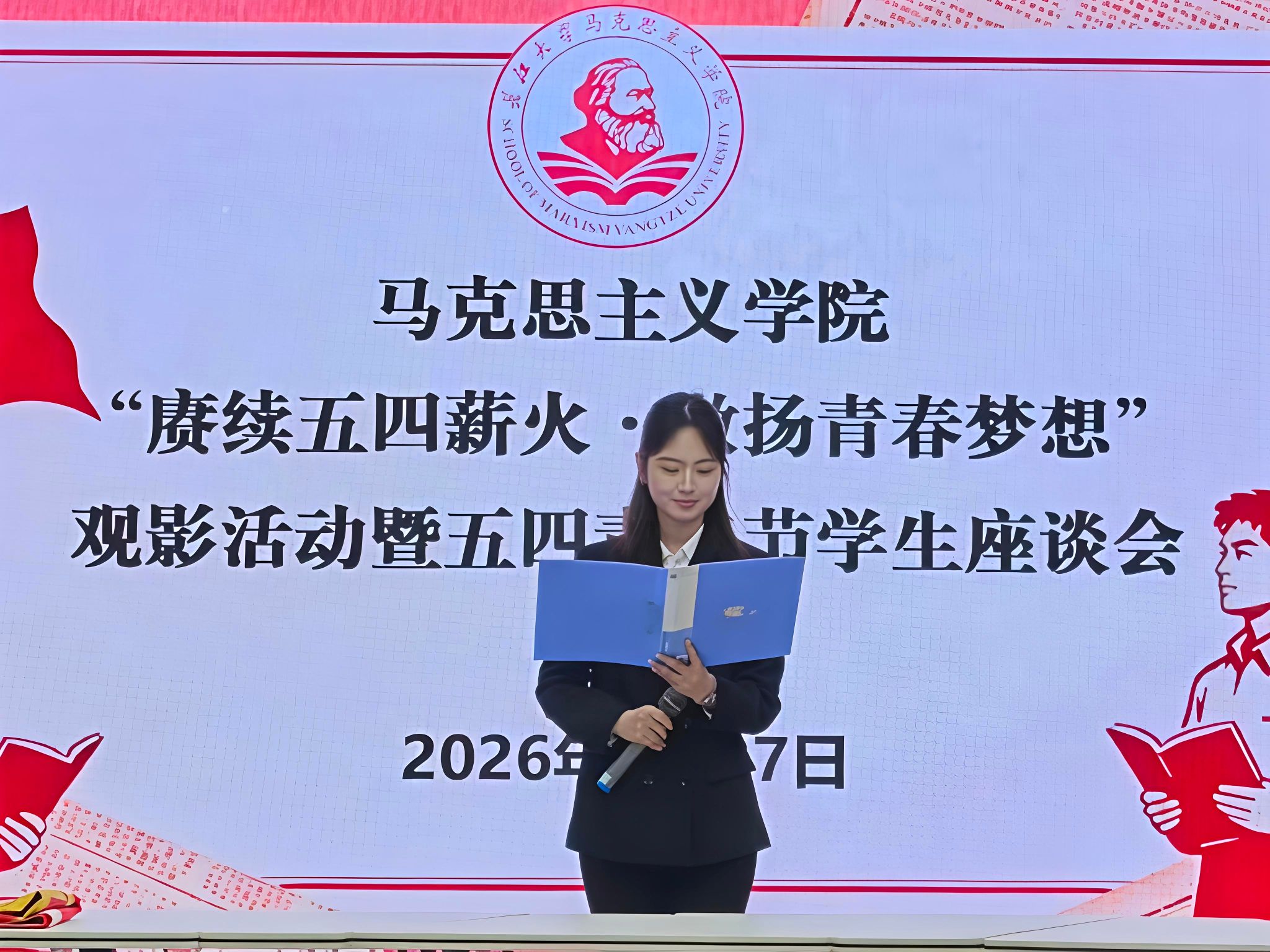 “赓续五四薪火·激扬青春梦想”观影活动暨五四青年节座谈会在文科楼1008室举行。学院团委书记张云雾与五十余名青年学生一同参加了活动。