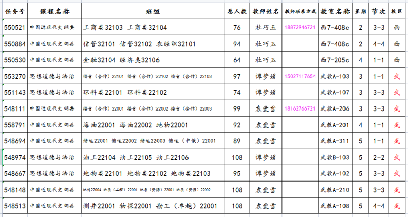 参加本次青年教师教学水平认证的人员开课信息如下: