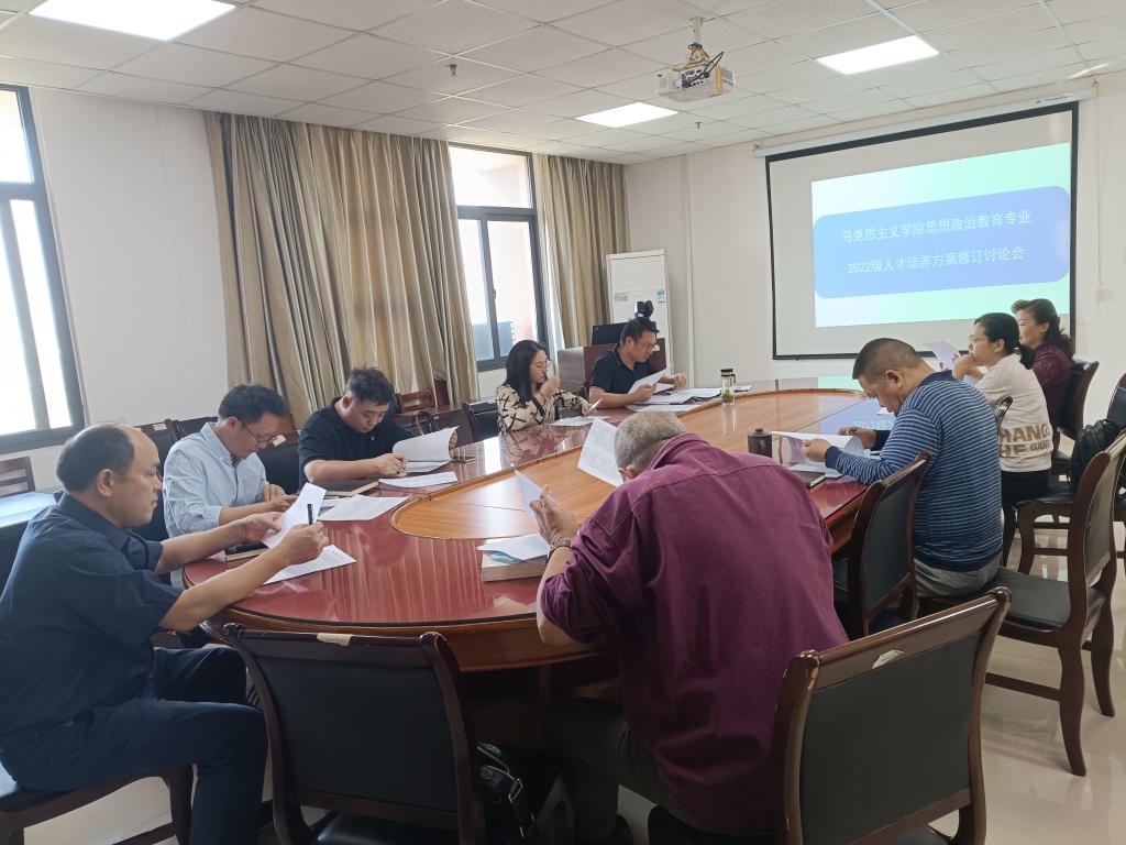 会上对2021和2022人才培养方案的修订再次进行了讨论。会议主要有三个内容:第一、关于2021级人才培养方案中的教育实习的安排。经过充分讨论,委员会决定保持2021级人才培养方案原订方案,教育实习仍安排在第五学期进行。第二、关于2022级人才培养方案的教育实习和课程调整。鉴于教育实习已经延长为十二周和其他学院对教育实习的安排,委员会决定将教育实习安排到第七学期进行。在课程调整方面,主要是将毛泽东思想、中国特色社会主义理论体系概论这两门课程合并为一门课程,学分为3;新增一门课程:习近平新时代中国特色社会主义思想概论,学分为3;部分专业课程的先后开课顺序进行了调整。第三、会议还对专业课程与毕业要求的对应关系逐一进行了讨论和修订。