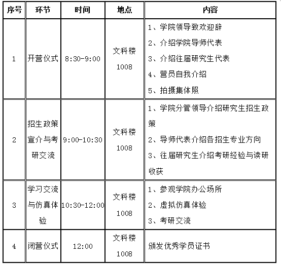 拟于 2023年 7 月1日(周六)举办2024年硕士研究生招生夏令营活动,活动举办期间,将向营员全面介绍各学院基本情况、学科发展近况、研究生培养情况,举办学术讲座、现场参观、师生交流、考研交流等活动。