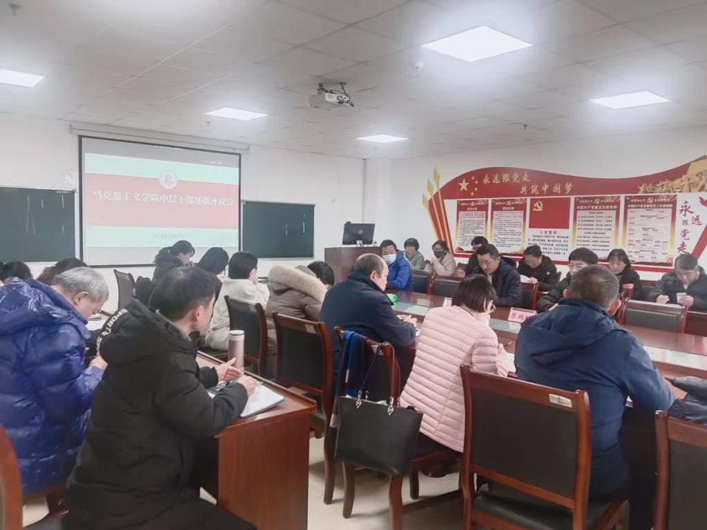 为全面总结过去一年工作,进一步凝心聚力,1月9日下午,91暗网 在文科楼1104室举行2024年度干部述职评议会,对中层干部、学院内设机构负责人进行考核评议。这次会议也是今年学院教代会的一部分。