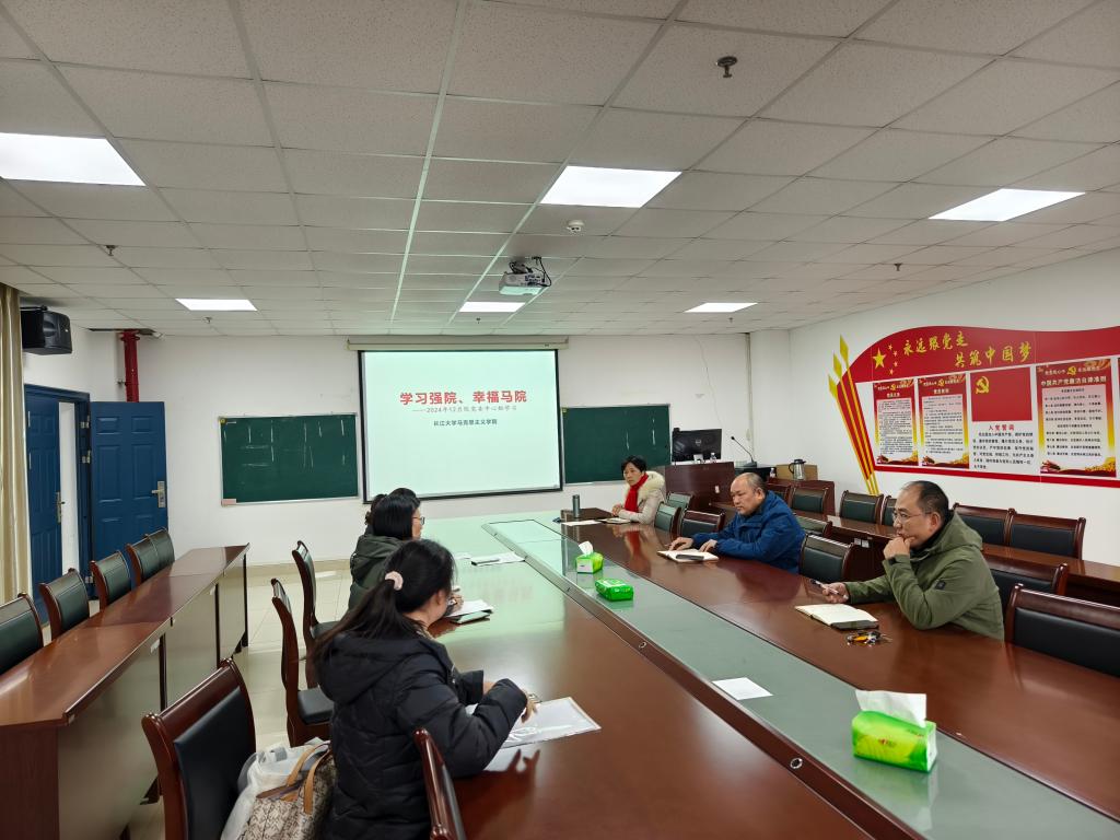 在文科楼1104室召开12月党委理论学习中心组集中学习会,会议由学院党委书记刘小燕主持,在校院领导和党委委员参加学习会。